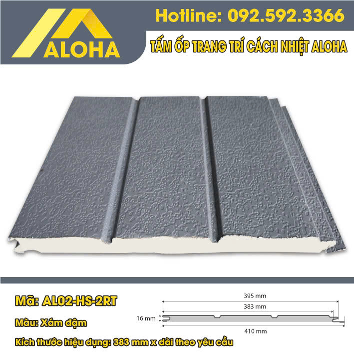 - Tấm ốp hợp kim Aloha là sản phẩm thế hệ mới, chuyên dùng cho vật liệu ngoài trời. Với tính năng vượt trội chống nước, chống gỉ sét, rất phù hợp làm nhà lắp ghép, nhà xưởng, nhà tiền chế, hay chống nóng trần nhà, hoặc trang trí cho các diện tường ngoài.