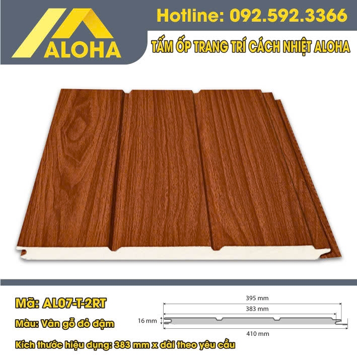 TẤM ỐP HỢP KIM PANEL ALOHA VÂN GỖ ĐỎ ĐẬM 2 RÃNH
