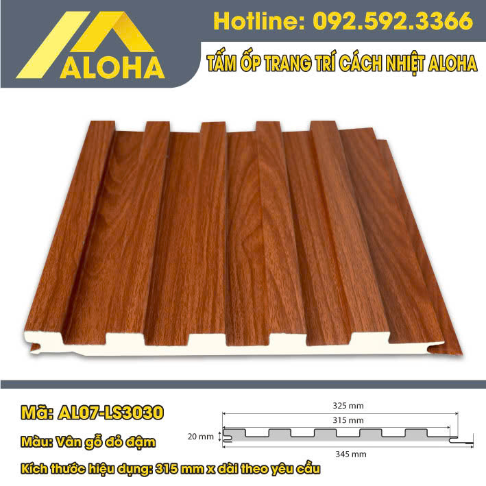 TẤM ỐP HỢP KIM PANEL ALOHA VÂN GỖ ĐỎ ĐẬM