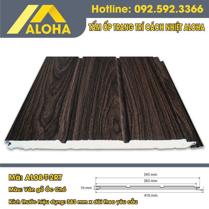 - Tấm ốp hợp kim Aloha là sản phẩm thế hệ mới, chuyên dùng cho vật liệu ngoài trời. Với tính năng vượt trội chống nước, chống gỉ sét, rất phù hợp làm nhà lắp ghép, nhà xưởng, nhà tiền chế, hay chống nóng trần nhà, hoặc trang trí cho các diện tường ngoài